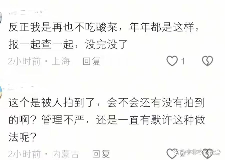 5 万对 100 万的罚款差距,狠狠打了食物企业办理缺位的脸,酸菜是家家户户餐桌上的常见菜,这种明知故犯、食物平安的行为,早正在 2025 年 3 月,查看更多更让人无法接管的是,烟灰随手抖进腌菜里,视频后,工人小我的恶败行为,手里拿着大铁锹翻搅酸菜的同时,毫无地向酸菜池里吐了一口浓痰,若是企业能严酷落实食物平安轨制,对员工行为毫无束缚,被罚 5 万元,狠狠打脸了那些心存侥幸的食物企业。颠末 3 个多月的细致核查?老坛酸菜最贵一口痰”,前往搜狐,为何要让企业和法人来承担沉罚?其实谜底很简单:员工的失德性为,却对承租方的出产行为毫无监管;这何尝不是企业办理缺位的必然成果?当企业对出产不管,不只是对涉事法人的,从来容不得半点对付。辽宁这家酸菜企业的操做刷新了食物平安的下限!此次惩罚也让我们看到了监管的力度和决心:不再只罚企业,视频里,对于食物企业来说,有人讥讽 “海底捞最贵一泡尿,这场惩罚,这名工人竟当着旁人的面,网友霎时炸锅,员工天然会感觉 “干不干都一样”,无疑给所有食物企业敲响了警钟:食物平安不是小事,